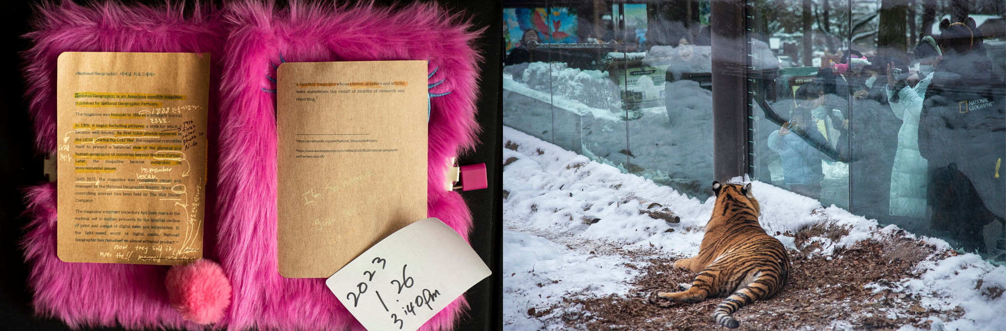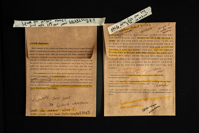 사소한 추구 Trivial Pursuit 한지민 사람들은 눈앞에 펼쳐지는 친숙한 일상에서 생소하기만 한 미지의 존재는 알아차리지 못했다._ 스쿠르테이프의 편지 프로젝트는 사진 속 주 피사체가 아닌, 주변 오브젝트에 주목하고, 그것을 통해 일상의 사진을 새롭게 의미화하는 작업이다. 이 프로젝트는 약 15년간의 일상 사진들을 정리하면서 시작되었다. 처음에는 사진의 주 피사체들을 보며 어떤 주제로 분류하고, 없앨지에 대한 고민을 했다. 그렇게 고민하며 사진들은 나에게서 잊혀졌다. 시간이 지나 사진을 다시 꺼내 보았을 때, 나는 사진 속 주인공이 아닌 주변의 작은 엑스트라들이 더 눈에 들어왔다. 그리고 그것들이 내 기억과 부딪히며 새로운 의미로 재탄생 되는 것을 경험했다. 사진을 채우던 여자서퍼 대신 흐릿한 수평선을 보았을 때, 에서 나온 수평선은 신기루 같은 이중적 공간이라는 묘사가 불현듯 머리에 스쳤다. 수평선은 먼 곳에서 봤을 때 가능성을 나타내지만, 가까이 다가가면 과거의 추억으로 사라지는 것이라는 생각이 들며 사진은 새로운 메시지로 나에게 남았다. 작품 속 사진과 함께 쌍을 이루는 텍스트 이미지(text image) "The Text: 더 텍스트"는 선택된 주변 오브젝트에 관한 객관적 사실과 이야기들로 이루어져 있다. 더 텍스트는 작품 속, 스쳐 지나게 되는 조연의 의미를 드러내는 것을 도와 그것의 숨겨진 독특함을 발견하고 관객들에게 새로운 의미를 정립할 기회를 제공한다. 프로젝트 시작 이후, 계속 평범한 일상 속의 사진들을 선택하고, 그 안에 포함된 작은 요소들을 조합, 변형하고 분류하는 과정 중 내가 사물의 일상성을 수집하는 것을 발견했다. 수집은 때때로 불안이라는 심리적 기제와도 연관이 있다. 인간으로서의 불안은 때로는 역행적인 과정으로 보일 수 있지만, 나에게 그 불안은 자유를 추구하는 미학적 가치의 원천이다. 이런 의미에서 보이지 않는 개인 삶의 조각이 각 이미지의 “사소한 오브젝트”의 예술성과 이어진다는 개념으로 각 사진 제목 앞에 "수집품"이라는 뜻의 collection이라는 단어를 사용했다. 는 평범함과 특별함 사이의 경계를 탐구하며 “사소한 것”이 개개인에게 돌아갔을 때 어떤 의미를 만들어내는지에 대한 탐구이다.